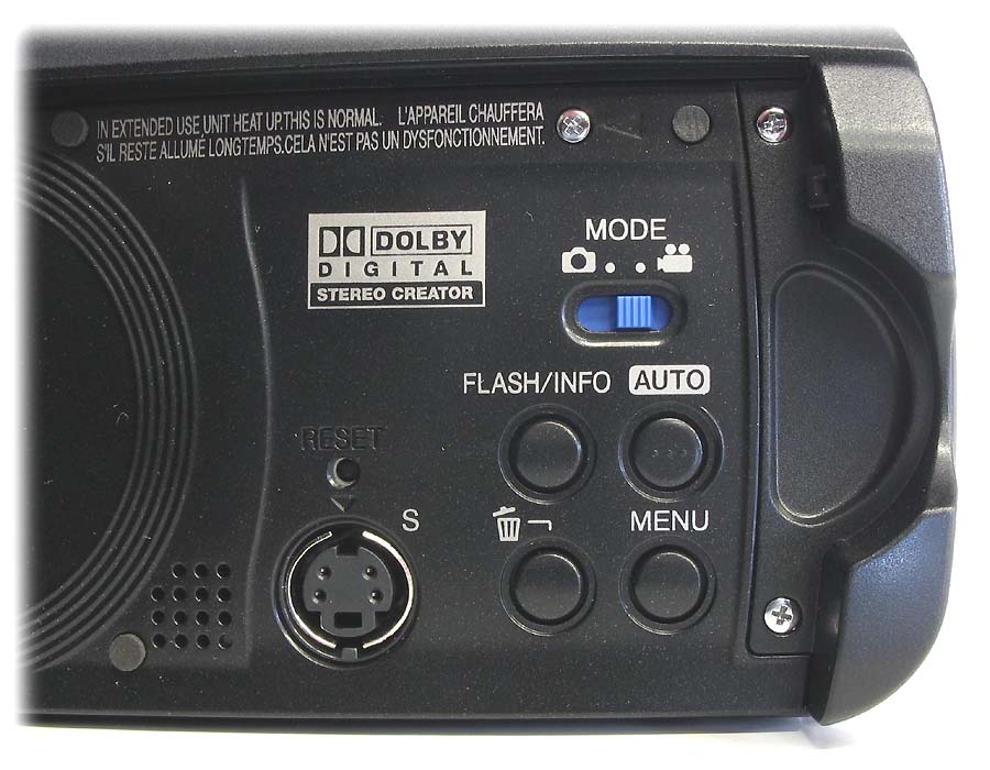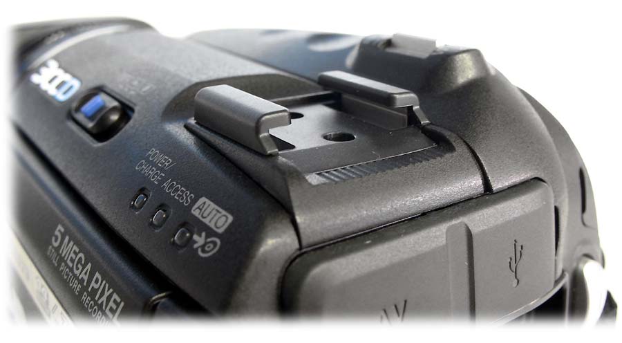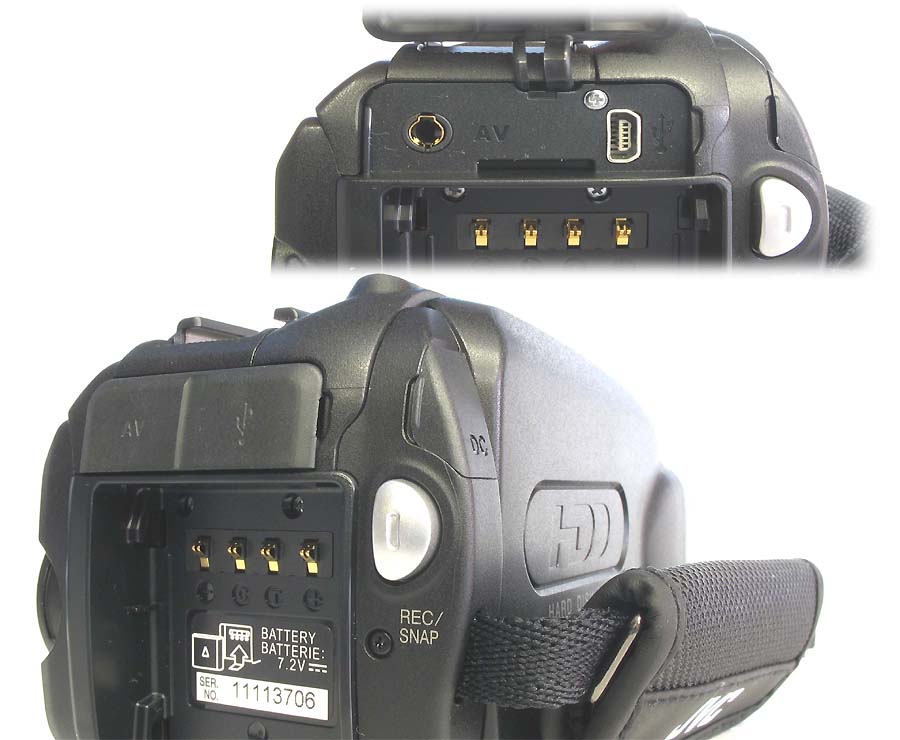 Velmi kompaktní stroječek váží důstojných 510 gramů v plné náloži, což je přece jen o kousek více, než mívají dnešní spotřebky. Širokoúhlý LCD-panel s úhlopříčkou 2,7" (asi 6,9 cm) má na boční straně při pohledu na vyklopený displej vlevo dvojici ovládátek, přičemž pro volbu v nabídkách kamery slouží tzv. joystick, který známe už z celé řady konkurenčních videokamer. Oproti kartové verzi MC500 je tu několik inovací, respektive změn: bereme-li LCD-displej a jeho rozměr jako první, hned druhá je v osazení botičky v zadní části nad uložením akubaterie. Po odklopení gumové krytky zdířek AV a USB jsem zakroutil hlavou: je tu bohatě místa i pro zdířku mikrofonu, ale Japončíci ji umístili do miniaturního prostoru mezi vestavěný mikrofon (samozřejmě stereo) a blesk, jenž tvoří jakýsi výběžek přední části krytu pevného disku. Ale s tímto povzdechem současně přidávám: hlavně že tu zdířka na mikrofon je, když už si mašinka chce hrát na fajnšmekrovskou. Za velmi praktický detail považuji vespod umístěný slot na SD-kartu, kam se dá ukládat nejen video (máme-li přehršle karet) a kopírovat data z disku (a na disk), ale hlavně je tu možnost si oddělit fotografie od videozáznamů, což například nelze u HDD-prvničky Sony, tedy modelu DCR-SR90…