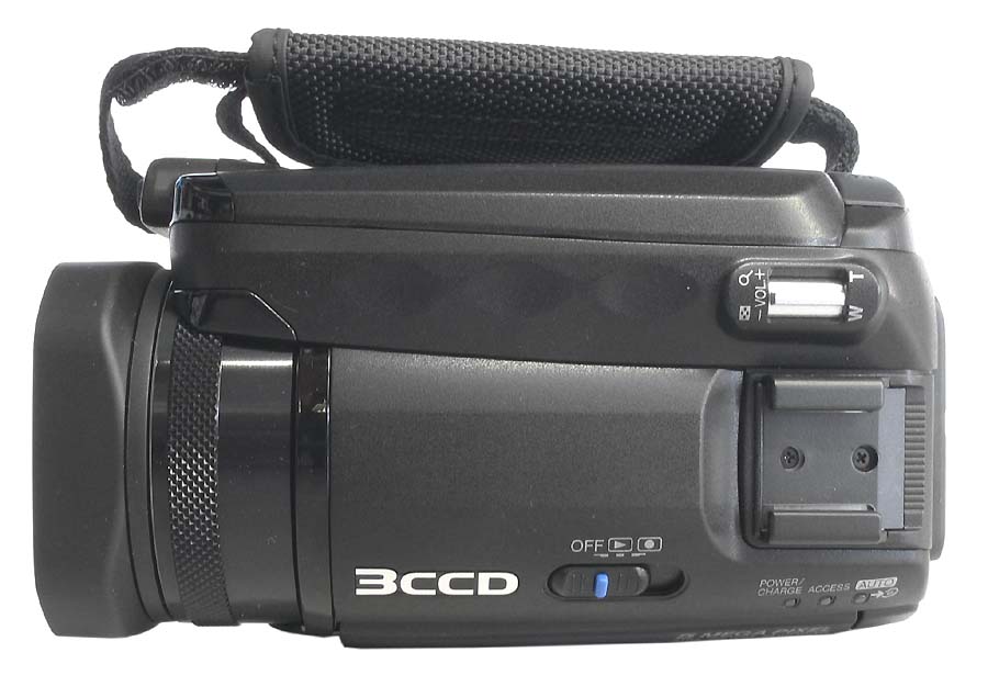 Ergonomie je uspokojivá, snad kromě té absence hledáčku, budu-li tuto neřest počítat k obsluze a praktičnosti v držení a ovládání přístroje. Zmíněný zápěstní řemínek nenutí kameramana k jakýmsi ekvilibristikám, jak jsem to naznačoval už v recenzích na MC200 a u o trošku lepšího řešení na MC500. Mašinka je celkem těžká, ale do (větší) kapsy na bicyklu se vejde pohodlně, nejlépe pak samozřejmě pečlivě zabalena do tzv. bublinkového pytlíku nebo vypolstrované brašničky. Po otevření LCD-displeje je k dispozici zmiňovaný křížkový ovladač - coby dnes mezi výrobci kamer už téměř universální řešení ovládání (s výjimkou daktylů firmy Sony). Na boku panelu je ale podle mého názoru takové ovládání permanentním nebezpečím k menší stabilitě záběrů a podle našeho desatera tak uživatel ohrožuje asi nejdůležitější zásadu natáčení vůbec. Pravda, s joystickem se v průběhu automatického nahrávání ani pracovat nemusí. Tlačítka pro pravou i levou ruku jinak padnou dobře, ovládání transfokátoru bych si dovolil vytknout titěrnost kolébečky. Stříbrná spouš slouží pro foto i video a oproti kamerám s dvěma tlačítky na tyto režimy přístrojů tedy může občas poplést nezaučeného uživatele…