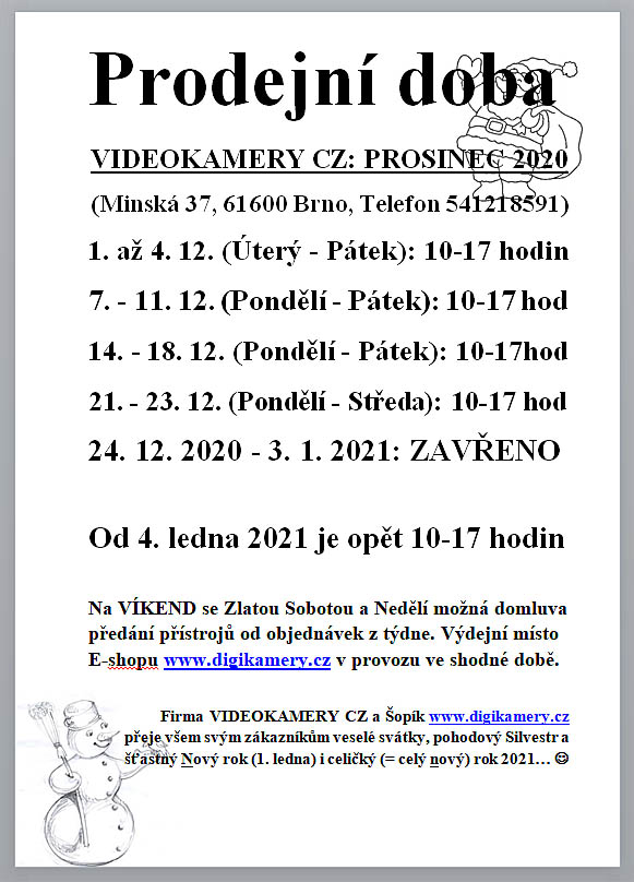 Vánoční provozní doba specializované Prodejny "VIDEOKAMERY CZ"