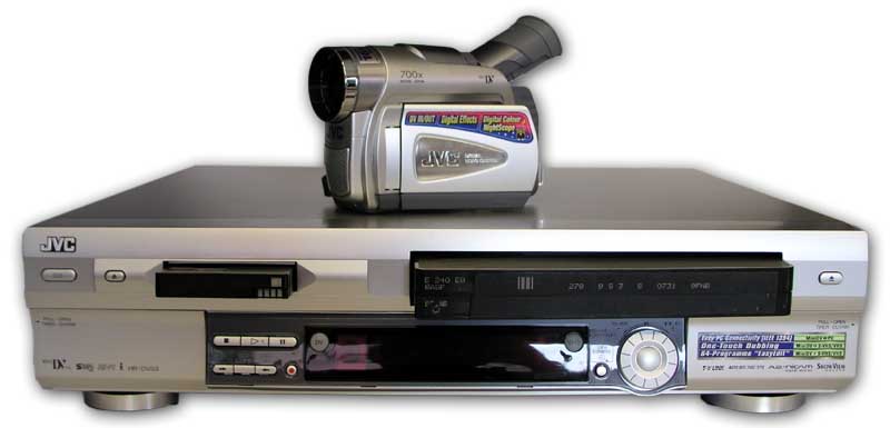 Videorekordér JVC HR-DVS3U a kamera (Klikni pro zvětšení) Úvod od Petra Jelínka: I při nejmodernějších dnešních možnostech zpracovávání videozáznamu (mezi něž řadíme především přímé propojení s PC a následný střih) tu vyvstává pro mnohé z tzv. hodně přetížených amatérů a fajnšmekrů (a samozřejmě hlavně i profesionálů...) otázka, jak lze ochránit mechaniku kamery před nadměrným (a zbytečným!) opotřebováváním. Jedním z těchto účinných řešení může být i námi (v letošním únoru) popisovaný (bohužel dost drahý: s MOC téměř 60 tisíc!) Video-walkman mini-DV firmy Sony,